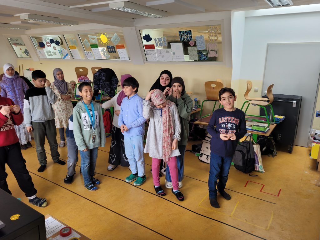 Heute wurde das Klassenzimmer der 1A zum Spielfeld gemacht. Angelehnt an das TV-Spiel „1, 2 oder 3“ mussten die Schüler*innen