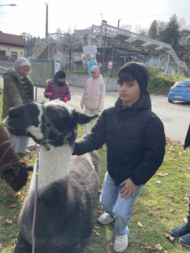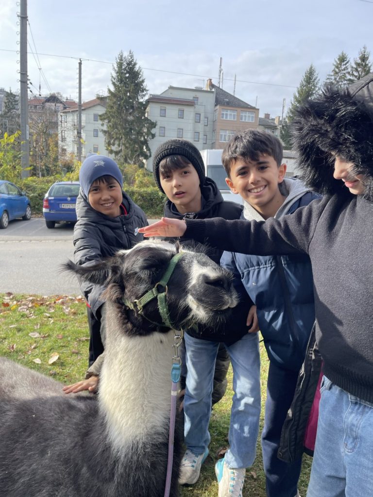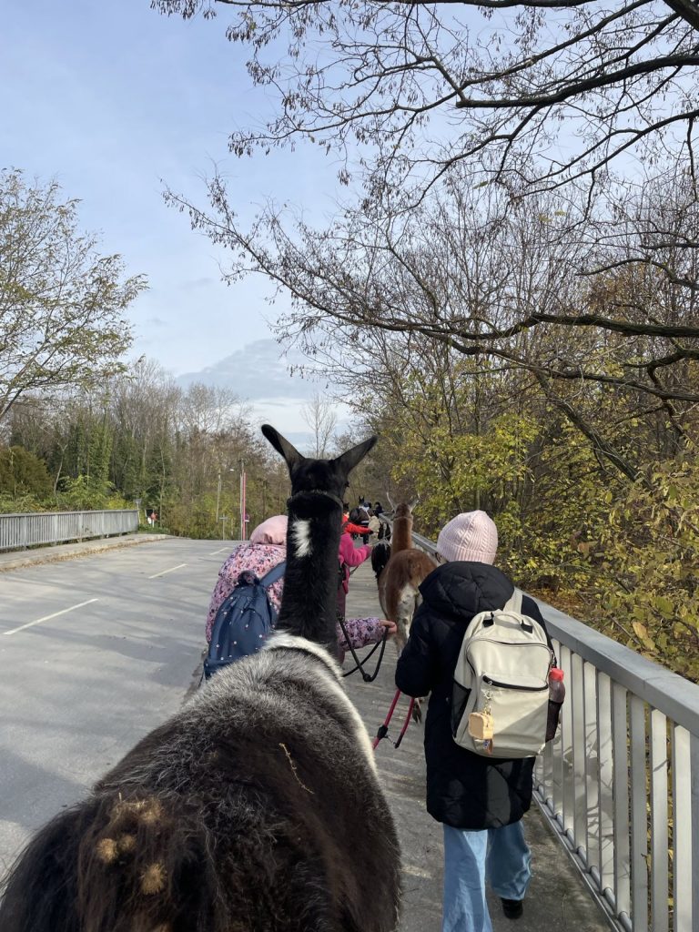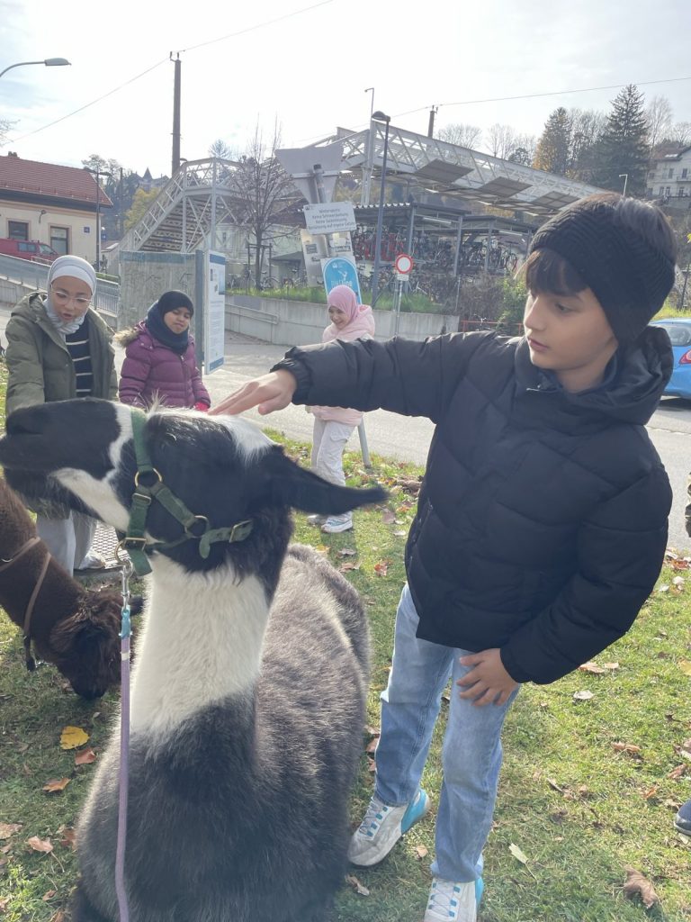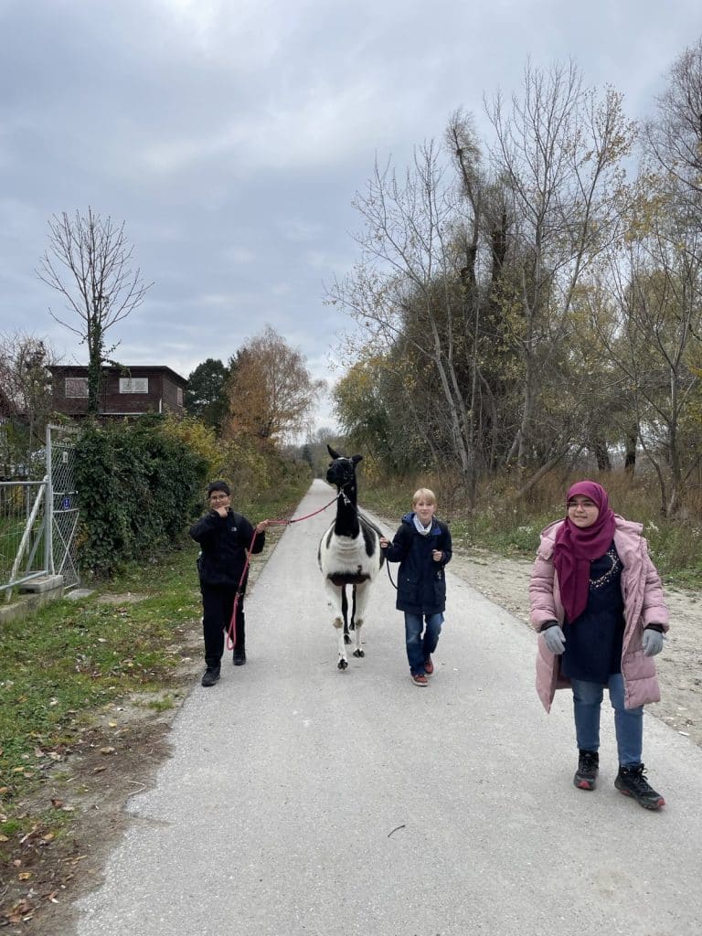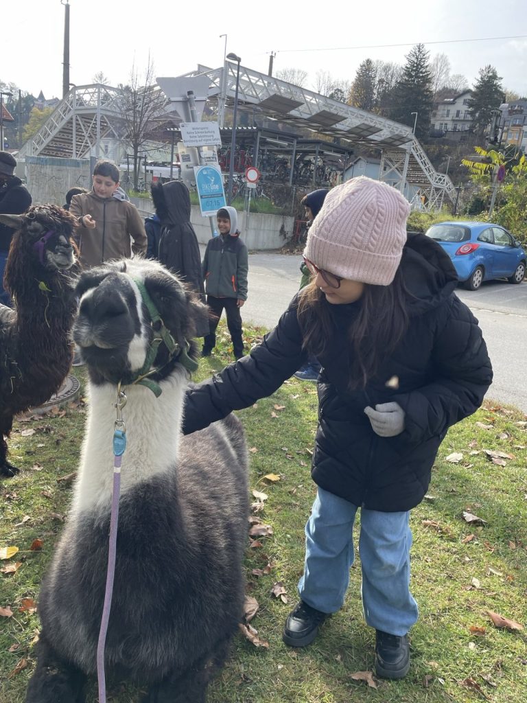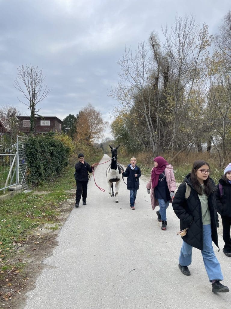 Raus aus dem Klassenzimmer, rein in die Natur: Beim Klasse-Workshop in Kritzendorf erwartete unsere Schüler:innen ein ganz besonderes Erlebnis. Nach der gemeinsamen Ankunft am Bahnhof lernten sie zunächst Lamas und Alpakas kennen, neugierig, ruhig und perfekte Begleiter für einen etwas anderen Lerntag.