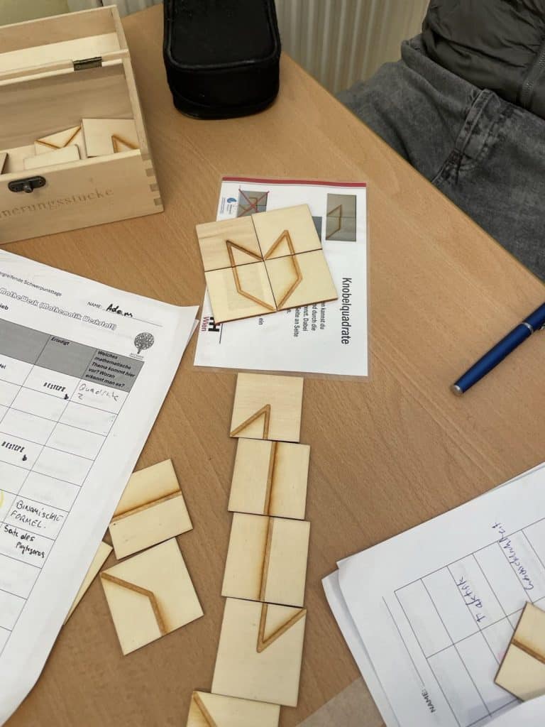 Dank der Unterstützung des Hauses der Mathematik hatten wir die besondere Gelegenheit, originale Materialien aus dem Museum an unsere Schule zu holen. Mehrere Tage lang konnten die Schüler:innen Mathematik aus einer völlig neuen Perspektive erleben: